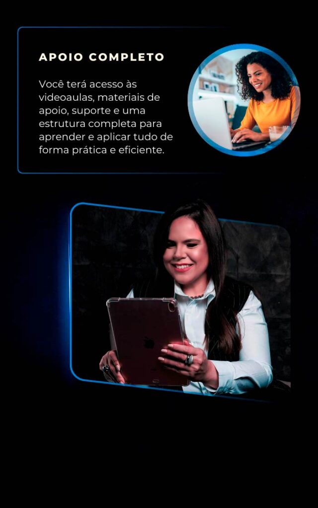 Você poderá assistir as videoaulas conforme o seu ritmo, tendo acesso vitalício ao curso, com direito a todas as atualizações.