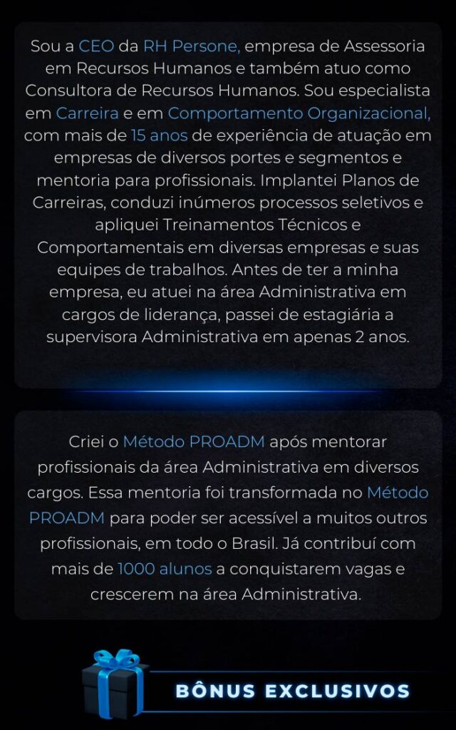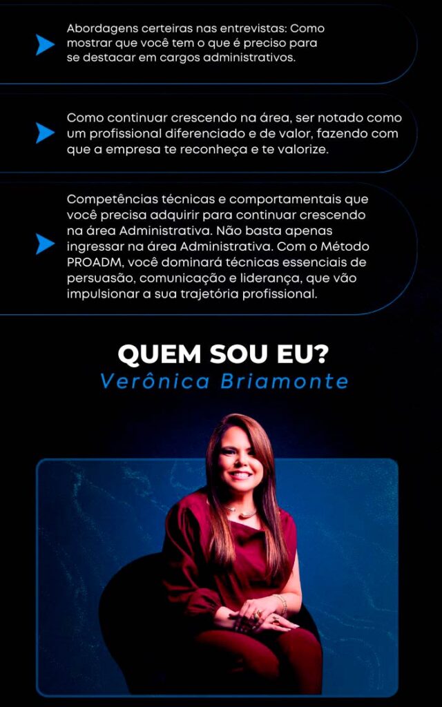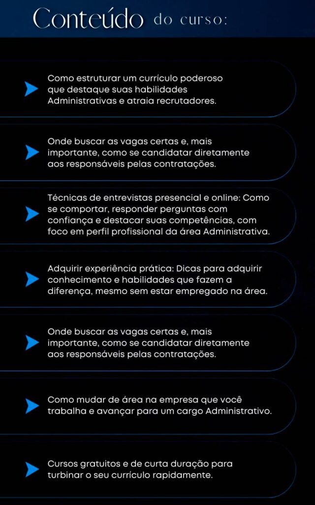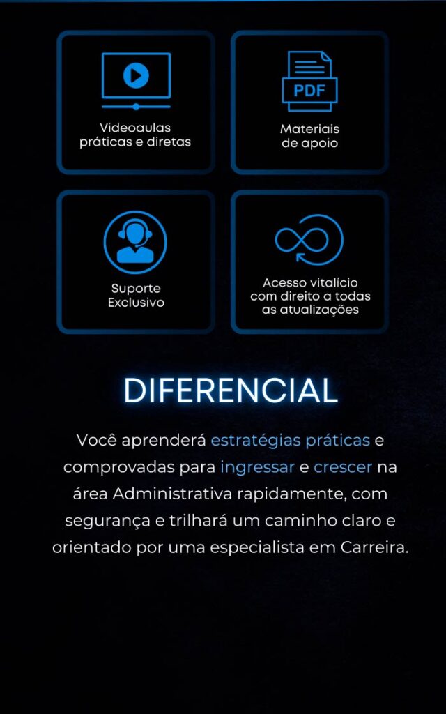 Não é necessário ter experiência. O foco é te orientar a desenvolver as competências certas e seguir o caminho ideal para conquistar a vaga e o crescimento desejado na área administrativa.